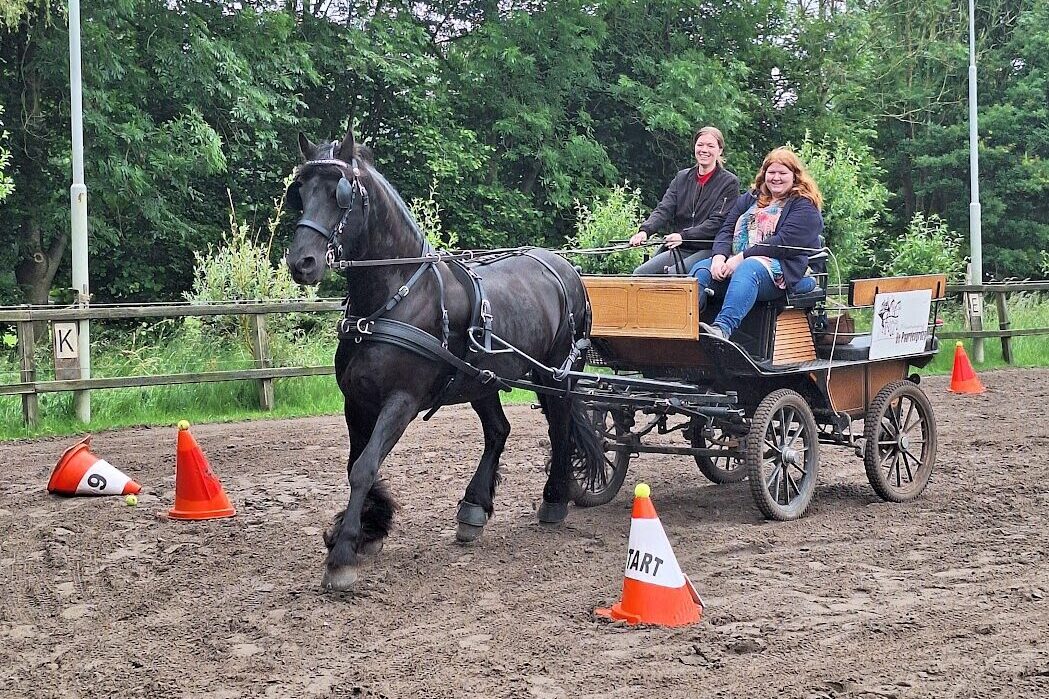 Tijdens de pionnenproef mogen de cursisten hun stuurvaardigheden testen tijdens een vaardigheidsproef! Hierbij wordt een parcours van pionnen neergezet die de deelnemers in een zo snel mogelijke tijd moeten uitrijden. Het overeind houden van de pionnen is echter ook belangrijk. Bovenop de pionnen liggen namelijk tennisballen. Bij het afstoten van een tennisbal, levert dat strafseconden op. We maken er daarom een leuk onderling wedstrijdje van, wie kan het snelst en het best door het parcours maneuvreren met paard en wagen?
