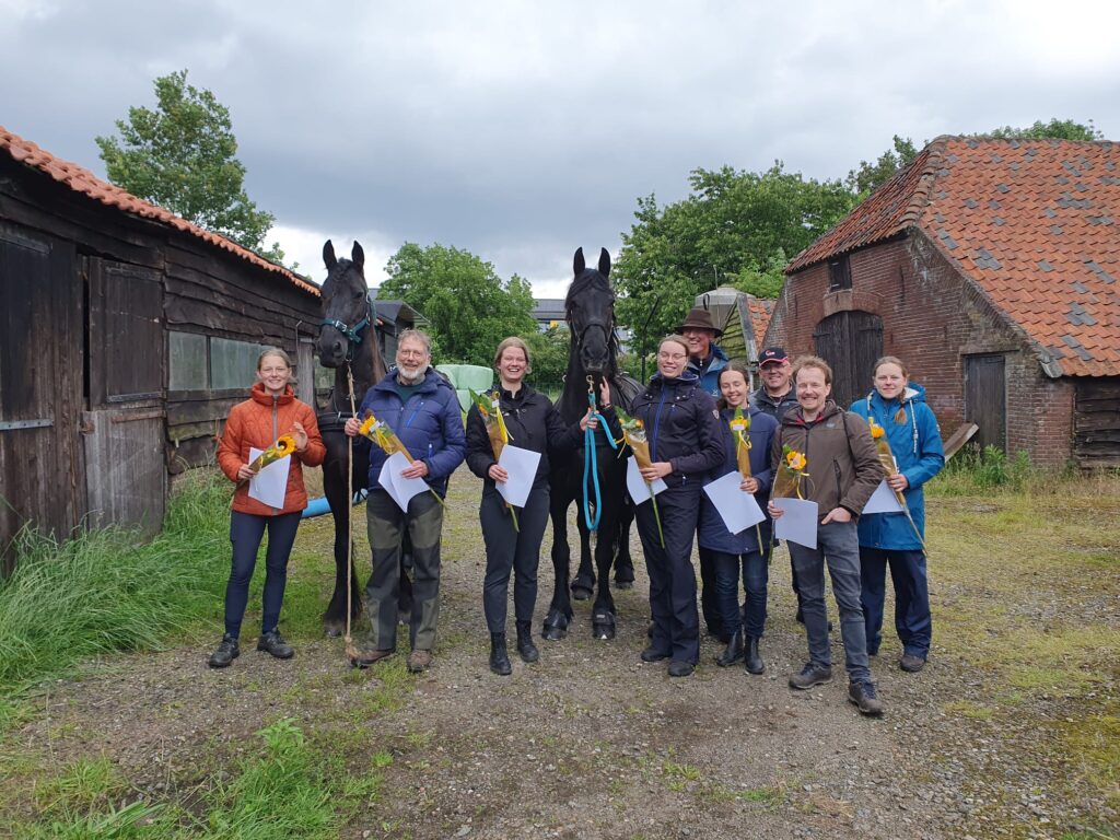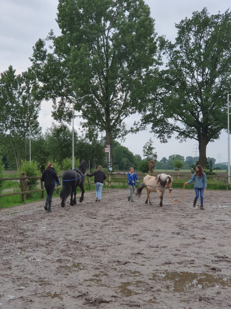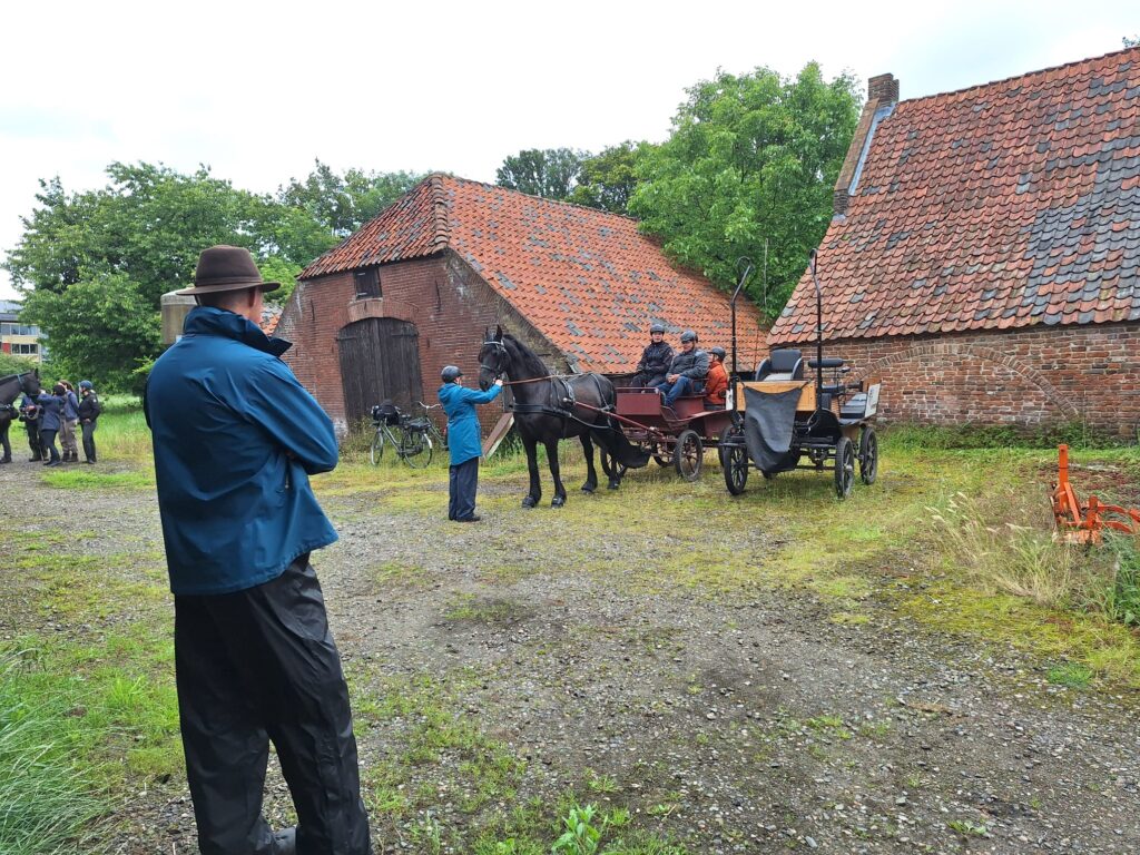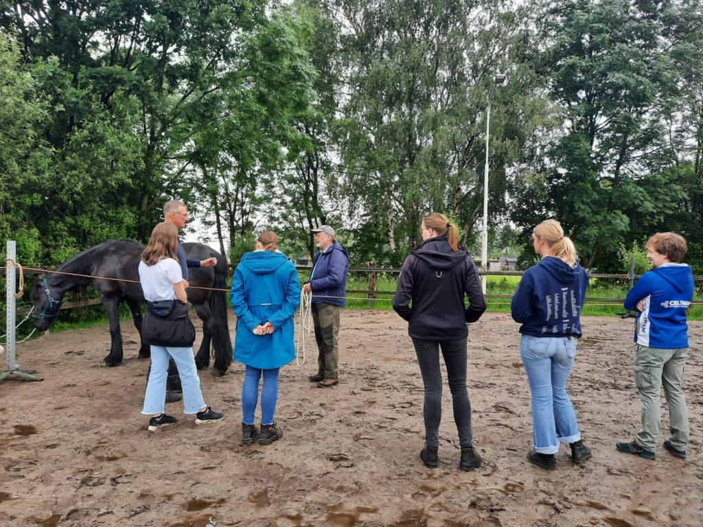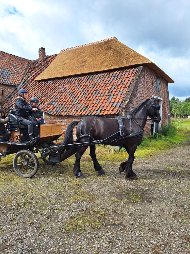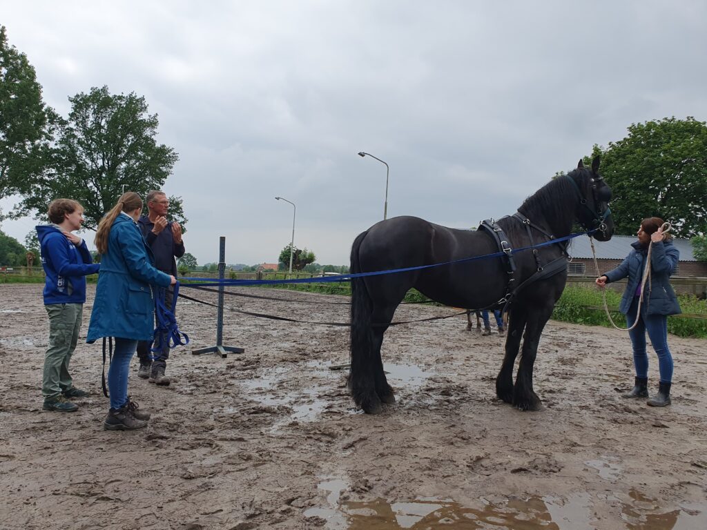 Tijdens deze leerzame workshop beginnen we eerst vanaf de grond met onze (al niet zo jonge) Hiske. Met het grondwerk wordt gefocust op het rondleiden en verplaatsen van je paard met voornamelijk je lichaamstaal. Dit afgerond hebbende, gaan we aan de slag met het wandelen aan de lange lijnen. Hierbij oefenen we met het rondbesturen van je paard zoals we dat op de wagen zouden doen, maar dan zonder wagen en vanaf de grond. Je loopt hierbij dus achter je paard en ‘leert’ daarbij je paard zelfstandig te lopen en te wennen aan de hulpen die gegeven worden. Als laatst oefenen we ook nog met het wennen aan het trekken van gewicht en het lopen tussen een lamoen. Zelfs als je dit uitvoert met al beleerde paarden, blijft het een erg leerzame ervaring!